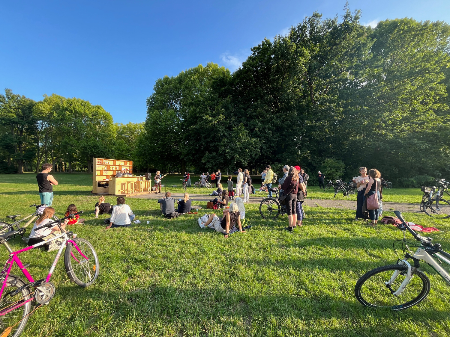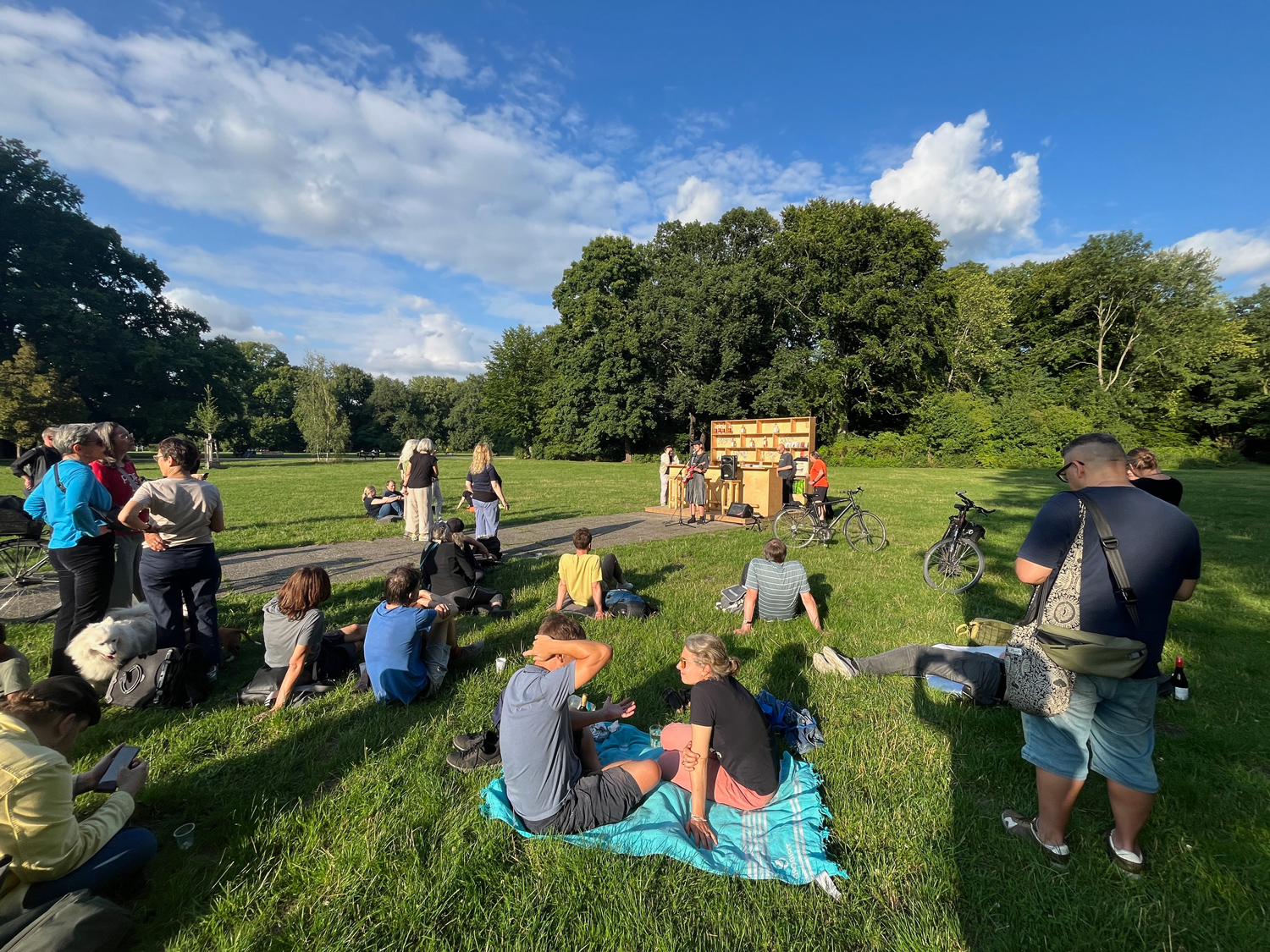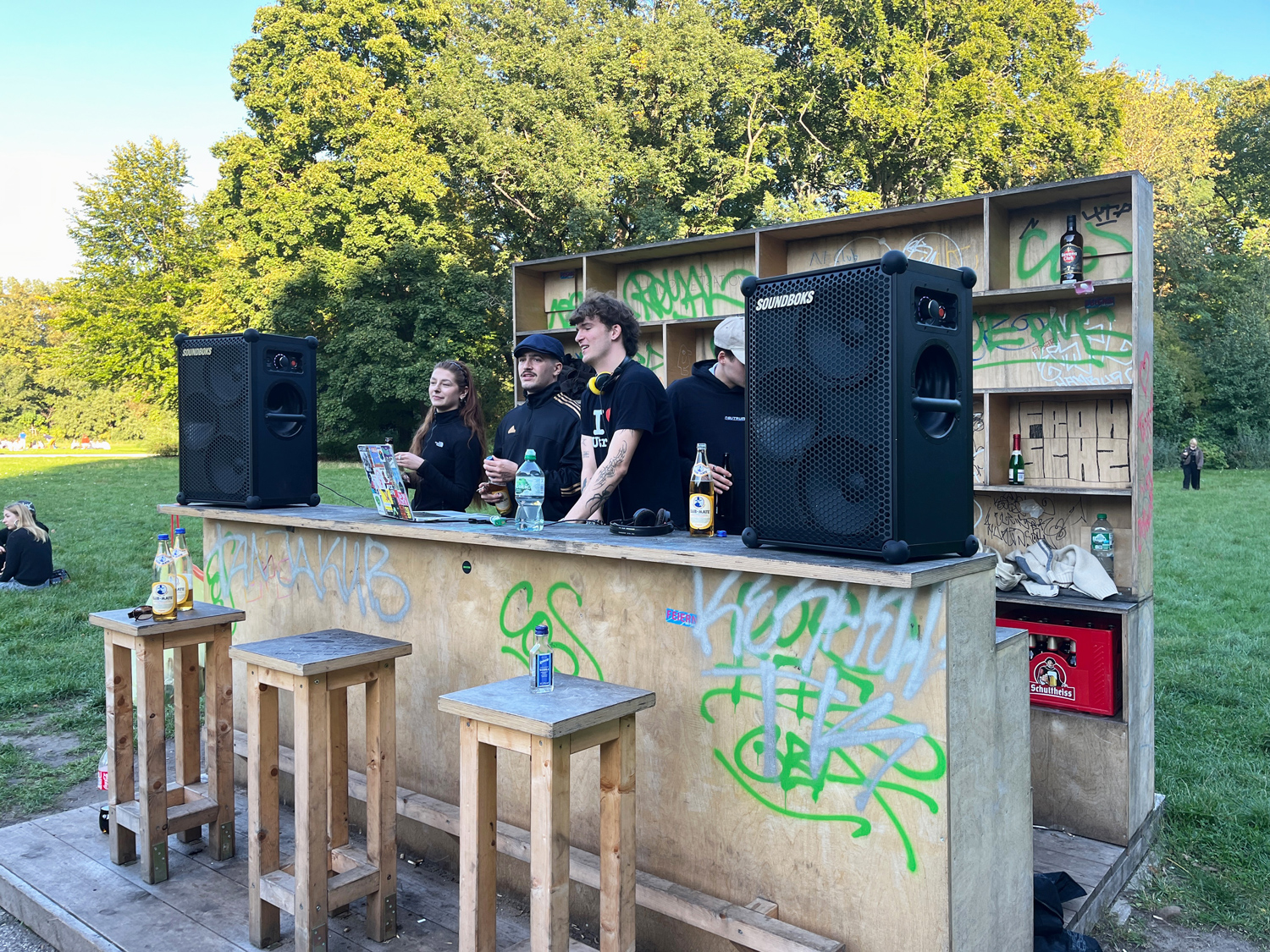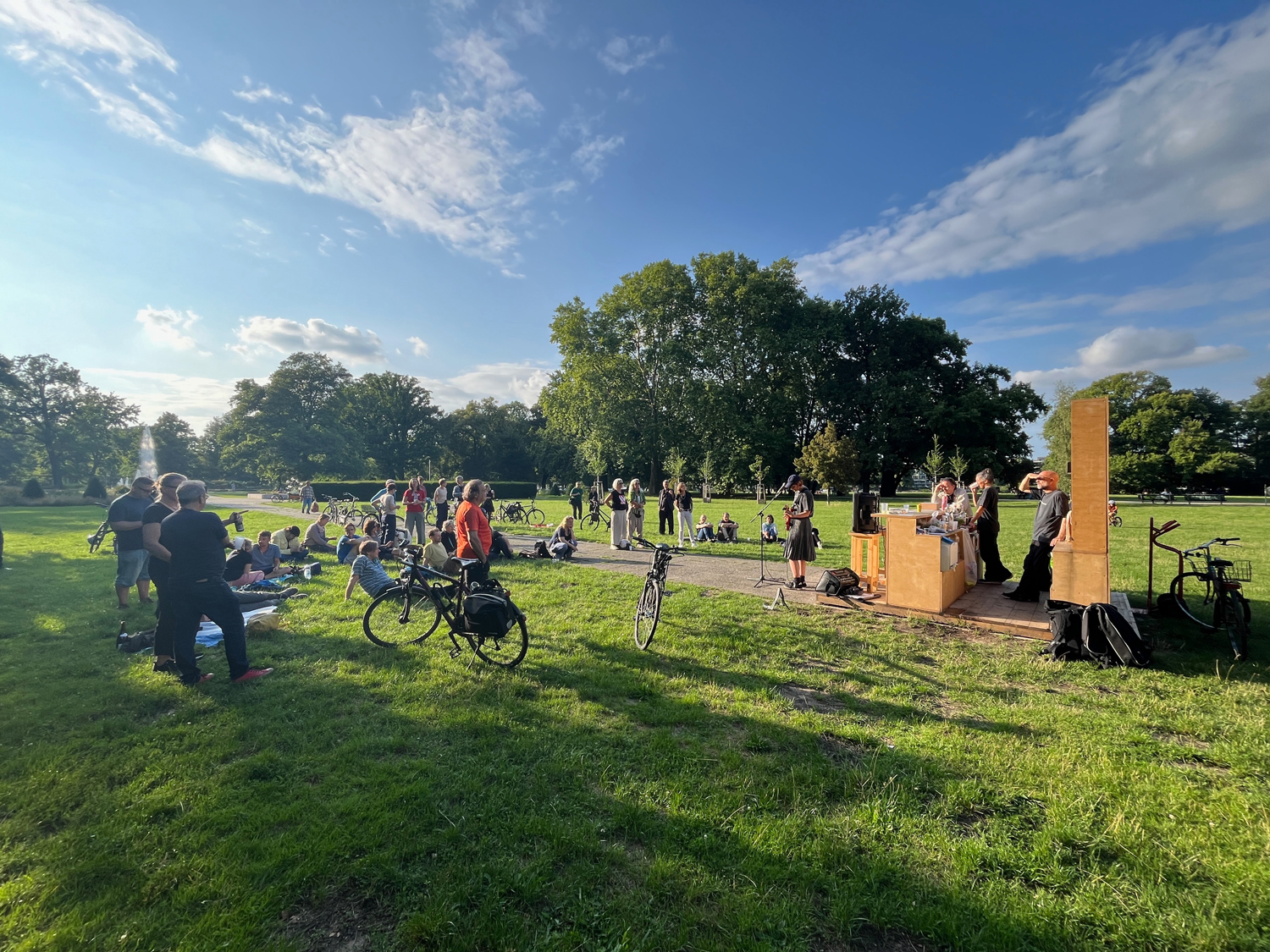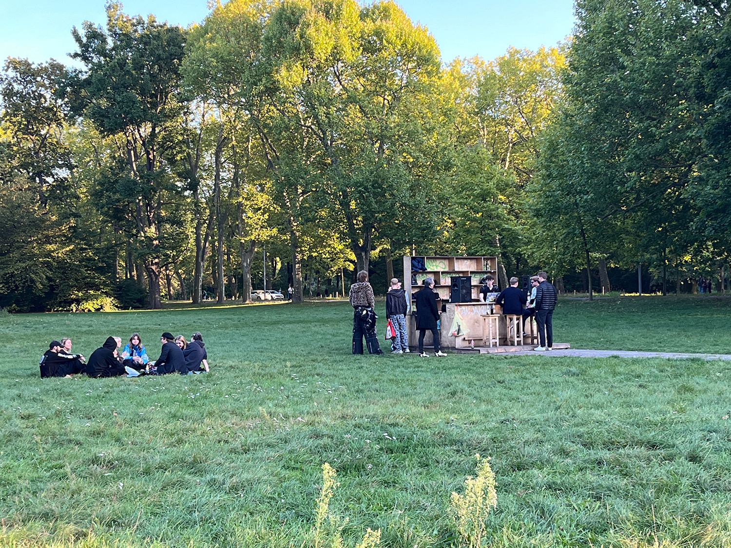 Und so kann sie natürlich auch von uns, von den Besucher*innen des Parks genutzt werden. Es steht allen frei, die Rolle des Barkeepers, der Barkeeperin zu übernehmen und Drinks zu servieren, die er oder sie mitgebracht haben. Ebenso kann sich Jede und Jeder an die Bar stellen oder setzen und auf den nächsten Drink warten.